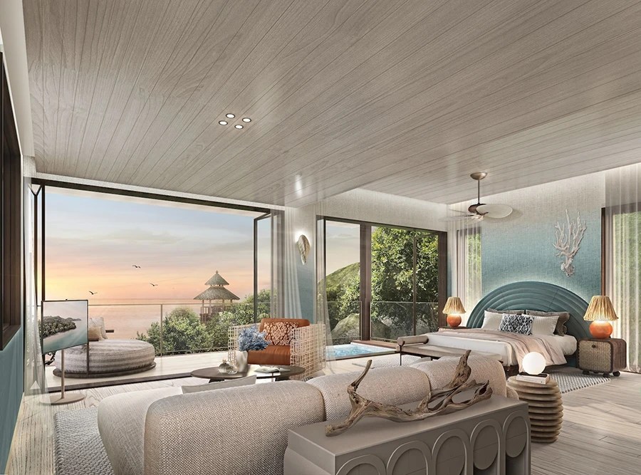 อันประกอบด้วยพูลวิลล่าริมชายหาดแบบ 3 และ 4 ห้องนอนที่แล้วเสร็จและพร้อมเข้าอยู่ พร้อมกางแผนพัฒนาเฟสสอง เตรียมนำเสนอพูลวิลล่าบนเนินเขาวิวทะเลแห่งแรกหนึ่งเดียวในจังหวัดระยอง ตลอดจนสกาย บาร์ สุดหรูวิวทะเลสุดตระการตาแบบพาโนรามาแห่งแรกในระยอง อีกหนึ่งไฮไลต์สำคัญของโครงการคือบริการอันเหนือระดับมาตรฐานที่อยู่อาศัยระดับเวิลด์คลาส พร้อมด้วยฟาซิลิตี้อันครบครันตอบโจทย์ไลฟ์สไตล์ Health & Well-Being ซึ่งยังคงมาแรงไม่หยุดในยุคนิวนอร์มอล พร้อมปักหมุดเป็นเดสติเนชันที่พักอาศัยและบ้านตากอากาศเพื่อสุขภาพระดับโลก มุ่งสร้างเวลเนสคอมมูนิตี้แบบครบวงจรหนึ่งเดียวใน จ. ระยอง และร่วมผลักดันให้ระยองและประเทศไทยเป็นเวลเนสทัวริซึมฮับของโลก