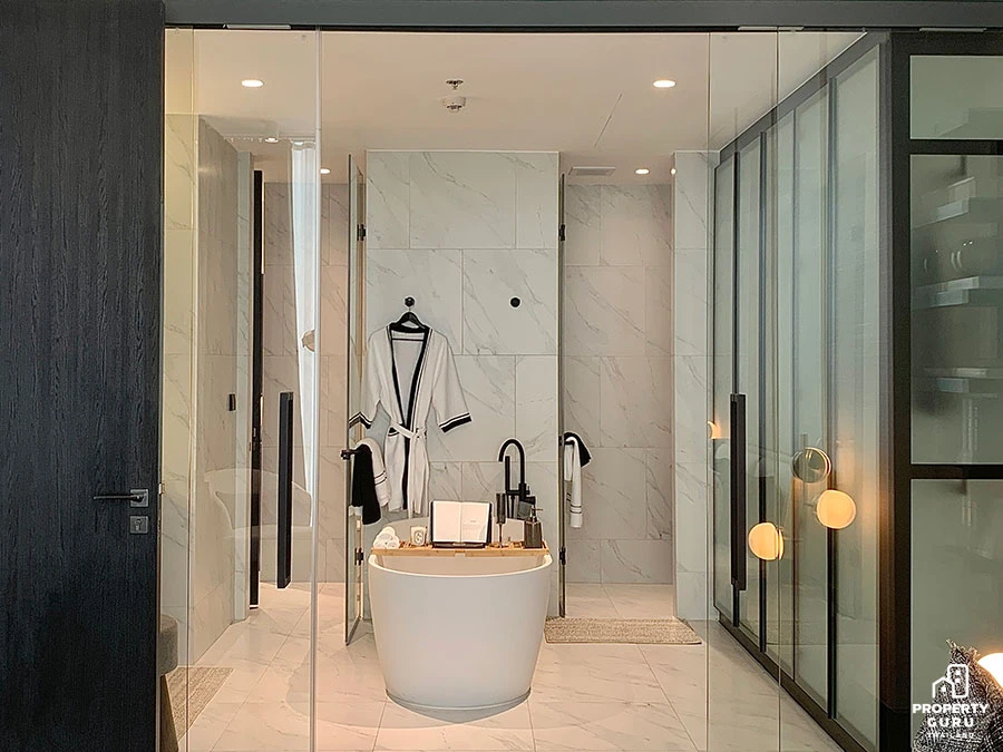 โซนห้องน้ำพร้อมอ่าง ส่วนโถสุขภัณฑ์และห้องอาบน้ำฝักบัวจะอยู่แยกเป็นสัดส่วนออกไป