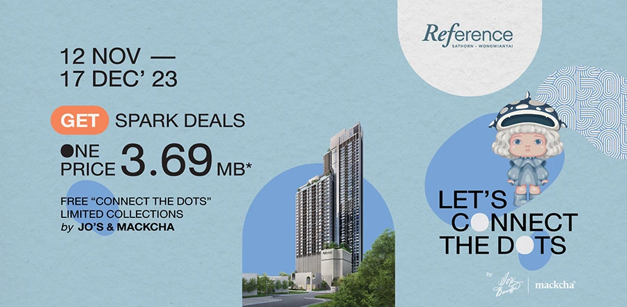 ชวนทุกคนมาสัมผัสเรื่องราวของการเชื่อมต่อกันระหว่างผู้คนที่นำพาไปสู่ประสบการณ์ใหม่ๆ กับผลงานการออกแบบ ‘Connect the Dots’ โดยศิลปินดาวรุ่งอย่าง ‘Mackcha’ (แม็กชา) หรือ ‘แม็ก-ชรารัตติ์ สาระอาภรณ์’ เจ้าของคาแรกเตอร์ ‘ชาล็อต’ (Chalotte) เด็กผู้หญิงผู้หลงใหลในท้องทะเลที่มาเนรมิตรบรรยากาศของ Jo’s 365 at Reference สาทร-วงเวียนใหญ่ ให้กลายเป็นท้องทะเลสีน้ำเงินแสนอบอุ่น ร่วมค้นหาแรงบันดาลใจครั้งใหม่ไปพร้อมๆ กันได้แล้วตั้งแต่วันนี้ที่ร้าน Jo’s 365 ณ คอนโดฯ Reference สาทร-วงเวียนใหญ่ หรือเข้าเยี่ยมชมห้องตัวอย่างได้ที่สำนักงานขายโครงการฯ ได้ทุกวัน ซึ่ง SC Asset ได้เตรียมมอบข้อเสนอพิเศษสูงสุดสำหรับผู้ที่สนใจโครงการ Reference สาทร-วงเวียนใหญ่กับแคมเปญ “SPARK DEALS” ONE PRICE 3.69 ล้านบาท* พร้อมรับดีไซน์ไอเท็ม “Connect the Dots” ลิมิเต็ด คอลเลกชัน จาก Jo’s & Mackcha กลับไปสะสม