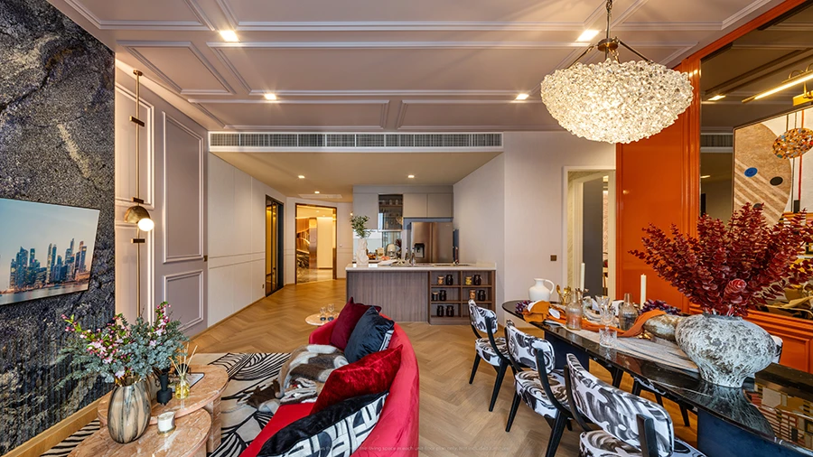 2. SUPER DESIGN ในส่วนของงานดีไซน์เป็นครั้งแรกของการนำแรงบันดาลใจ Japanese – Italian Craftsmanship สู่การรังสรรค์ผลงานอินทีเรียดีไซน์ สมบูรณ์ทั้งเอกลักษณ์รองรับการใช้ชีวิตเหนือระดับที่แตกต่าง โดยเอพีได้ทำงานร่วมกับบริษัทออกแบบอินทีเรียแนวหน้าของประเทศคือ VAIR DESIGN นำโดยคุณเบญญาภา ศิริโสภณ ดีไซเนอร์และผู้ก่อตั้ง ที่เข้ามาร่วมถอดรหัสอินไซต์ไลฟ์สไตล์ของลูกค้าระดับบนในย่านเจริญนคร สู่การลงดีเทลรายละเอียดในงานออกแบบ ที่สร้างความสมดุลระหว่างความงดงามที่สัมผัสได้ และสุนทรียะ ทั้งการเลือกสรรเฟอร์นิเจอร์ดีไซน์พิเศษ และวัสดุคุณภาพ พร้อมสเปซฟังก์ชันส่วนกลางที่รองรับไลฟ์สไตล์ประสบการณ์สุดพิเศษ กว่า 1,360 ตารางเมตร อาทิ Lobby Lounge ตกแต่งอย่างมีเอกลักษณ์ด้วยลวดลายสะท้อนความลื่นไหลของสายน้ำ ผสมผสานอย่างลงตัวกับการเลือกใช้วัสดุตกแต่งกระจกสั่งทำพิเศษ Silk Pattern Glass และ Crystal Symphony Craftsmanship ขับความไอคอนิคของทุกพื้นที่ ด้วยมุมมิติแสงที่กระทบผ่านคริสตัล ให้บรรยากาศและความพิเศษแตกต่างกันในแต่ละช่วงเวลาของวัน Artistic Pavilion (ชั้น 28) พื้นที่พักผ่อนบนชั้น Sky Facility โดดเด่นด้วยมาสเตอร์พีซชิ้นสำคัญ งานศิลปะสไตล์โมเดิร์นแบบโอเวอร์สเกล พร้อมโซฟาเลาจน์ดีไซน์พิเศษ เชื่อมการใช้ชีวิตสุดไพรเวทเข้ากับวิวขอบฟ้าอย่างลงตัว รวมถึงเติมฟังก์ชันพิเศษที่ The Grand Yacht Lounge (ชั้น 29) พื้นที่รองรับผสานความงามพร้อมฟังก์ชันตอบประสบการณ์พักผ่อนที่เหนือความคาดหมาย โดดเด่นด้วยเอกลักษณ์งานออกแบบและโทนสีสไตล์ Italia Yacht และเชื่อมต่อสู่ Private Club (ชั้น 29) มอบความสุนทรียะความผ่อนคลายให้กับผู้ใช้งานท่ามกลางผลงานศิลปะและการตกแต่งด้วยความงามจากหินธรรมชาติ มารังสรรค์เป็น Iconic Bar รูปทรงโค้ง Sky Living Room (ชั้น 29) อีกหนึ่งพื้นที่รองรับการทำงาน ทั้งการใช้งานแบบส่วนตัวหรือแบบกลุ่ม ผ่านการเลือกเฟอร์นิเจอร์ ความเรียบง่ายที่ทรงคุณค่าเหนือกาลเวลา และ Private Gym (ชั้น 29) รองรับเทรนด์การออกกำลังกายที่ครบครันด้วยอุปกรณ์จากแบรนด์ชั้นนำ พร้อมเพิ่มเสน่ห์ของสเปซด้วยภาพกราฟิกดีไซน์อันเป็นเอกลักษณ์ บนผืนผ้าใบขนาดใหญ่ เป็นต้น