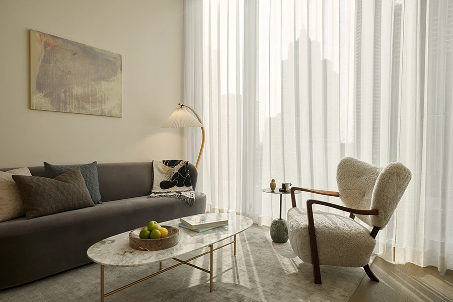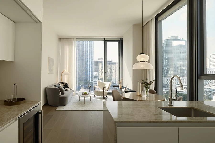 “คอนเซ็ปต์ “Daring & Timeless Elegant” คือการผสมผสานความน่าค้นหาของการดีไซน์ ที่ทุกชิ้นเปี่ยมไปด้วยเรื่องราว และรายละเอียดที่น่าหลงใหล ไม่ว่าจะเป็นรูปทรงโค้งมน สีสันที่มีความทันสมัย ตลอดจนการเลือกใช้วัสดุธรรมชาติจากทั่วทุกมุมโลกให้มีความกลมกลืน บวกกับความพิถีพิถันในการเลือกสรรเฟอร์นิเจอร์และของตกแต่งบ้านทีมีสไตล์ร่วมสมัย เหมาะกับทุกช่วงเวลาของชีวิต ทำให้ Residences แห่งนี้จะตอบโจทย์ไลฟ์สไตล์ที่ทันสมัยและมีเอกลักษณ์ได้แม้เวลาผ่านไปนานเพียงใด”