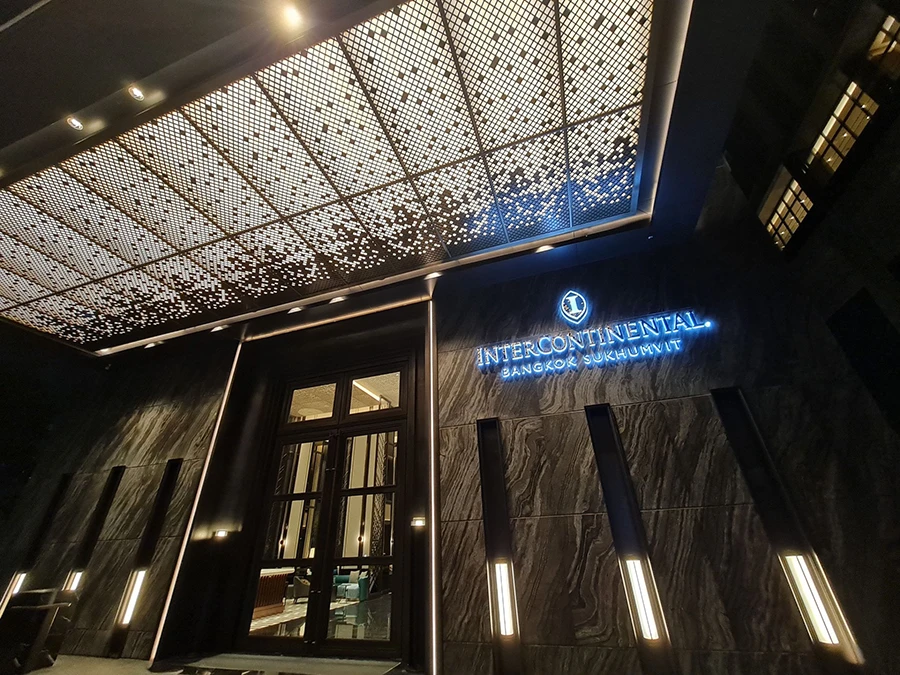 โรงแรมอินเตอร์คอนติเนนตัล แบงค็อก สุขุมวิท ตัวโรงแรมเป็นอาคารสูง 34 ชั้น ตกแต่งสไตล์ไทยร่วมสมัยที่ยังคงกลิ่นอายเอกลักษณ์ความเป็นไทย ด้วยการถ่ายทอดแรงบันดาลใจจากศิลปะไทยเลื่องชื่อที่เน้นการถักทอด้วยมือผ่านทุกรายละเอียด ตั้งแต่ทางเข้าล็อบบี้จนถึงภายในโรงแรม โดยมีห้องพักและห้องสวีทให้บริการทั้งหมด 241 ห้อง เริ่มตั้งแต่ขนาด 34 ไปจนถึง 200 ตารางเมตร และสิ่งอำนวยความสะดวกครบครัน อาทิ ผลิตภัณฑ์อาบน้ำแบรนด์หรูจากยุโรปไบรีโด Byredo บริการรูมเซอร์วิสตลอด 24 ชม. ทั้งยังมีห้อง เพรสซิเดนเซียล สวีท (Presidential Suite) พื้นที่ใหญ่ที่สุดถึง 200 ตารางเมตร มาพร้อมระเบียงส่วนตัวพร้อมสระว่ายน้ำบนพื้นที่นอกชาน สามารถมองเห็นวิวเมืองได้รอบทิศบนชั้น 30 รวมทั้งรองรับการจัดเลี้ยงสุดเอ็กซ์คลูซีฟใจกลางเมือง มอบช่วงเวลาพักผ่อนสุดพิเศษให้กับผู้เข้าพัก