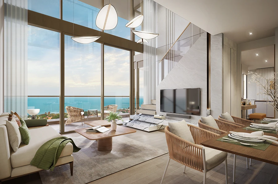 1) Penthouse Horizon Bay ขนาด 147 ตร.ม. ราคาเริ่มต้นที่ 22.39 ล้านบาท ประกอบไปด้วย 3 ห้องนอน ห้องนั่งเล่นขนาดใหญ่ ระเบียงกว้างสามารถเชื่อมให้ห้องนั่งเล่นกว้างขึ้นตามความต้องการ พร้อมความพิเศษกับวิว พาโนรามิก ที่ได้ทั้งวิวทะเลไปถึงเขาตะเกียบ และวิวภูเขาสำหรับชมพระอาทิตย์ตกยามเย็น