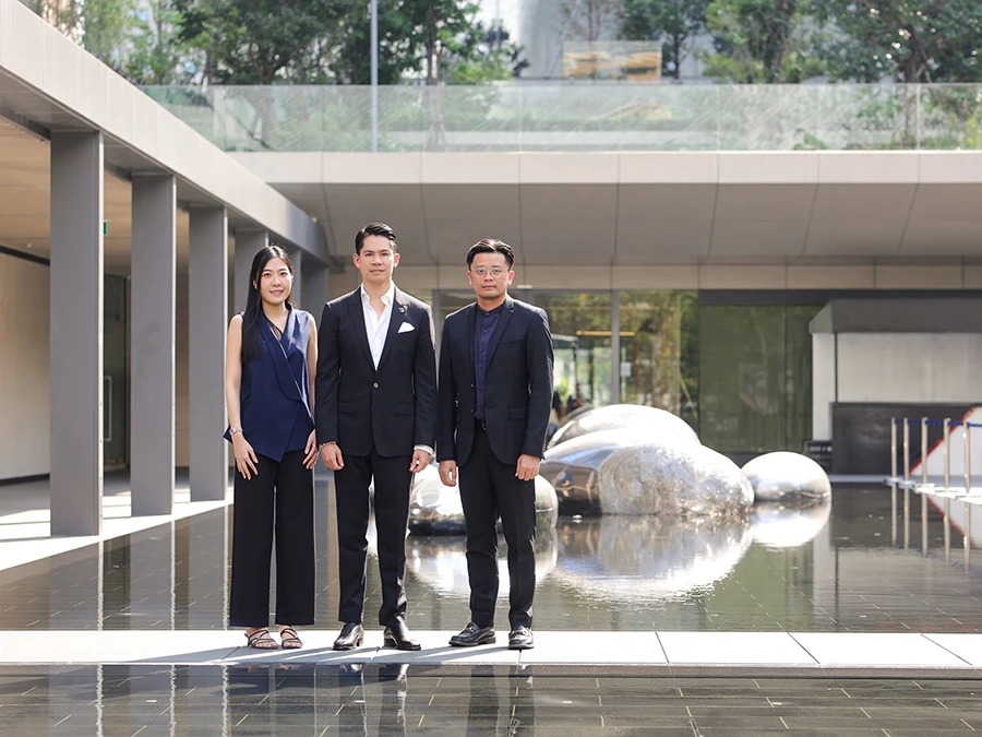 นายกรณ์ ณรงค์เดช (กลาง) ประธานเจ้าหน้าที่บริหาร RML (บริษัท ไรมอน แลนด์ จำกัด มหาชน) ผู้นำในการพัฒนาอสังหาริมทรัพย์ระดับลักชัวรี่และอัลตร้าลักชัวรี่ของไทย ร่วมกับ นางสาวพิชชาภัสร์ พรภักดีวัฒนา (ขวา) กรรมการบริษัท บริษัท อินฟินิตี้ บางกอก กรุ๊ป จำกัด และ นายเมธี อัครมหาพาณิชย์ (ซ้าย) ผู้จัดการอาวุโสฝ่าย Brand Management บริษัท บุญรอดบริวเวอรี่ จำกัด เชิญชวนชาวกรุงเทพฯ และนักท่องเที่ยวมาร่วมงาน ‘Happiness Reimagined’ ซึ่งจัดขึ้นเป็นครั้งแรกที่ OCC อาคารสำนักงานลักชัวรี่ Grade A+ ที่สูงที่สุดในไทย ติด BTS เพลินจิต เพื่อส่งท้ายปีเก่าต้อนรับเทศกาลปีใหม่