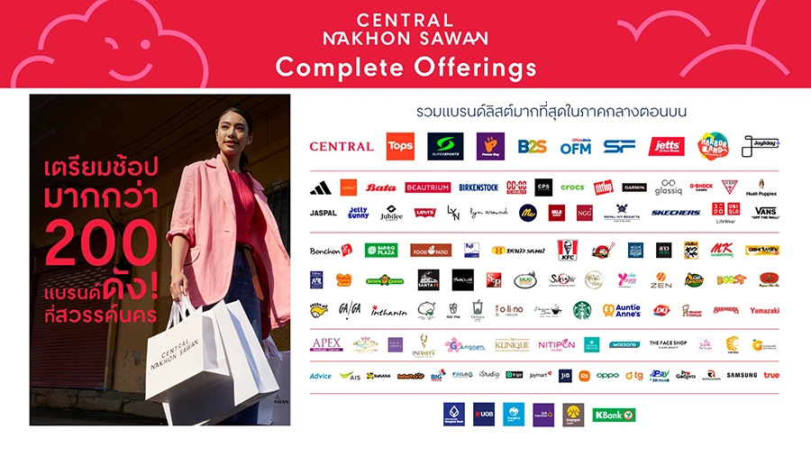 • รวมแบรนด์ลิสต์ครบครันและมากที่สุดในย่าน กว่า 200 ร้านค้า ครั้งแรก! อีกกว่า 500 แบรนด์ดังในห้างฯ ผนึกกำลังเป็นหนึ่ง ปักหมุดเปิดที่เซ็นทรัล นครสวรรค์