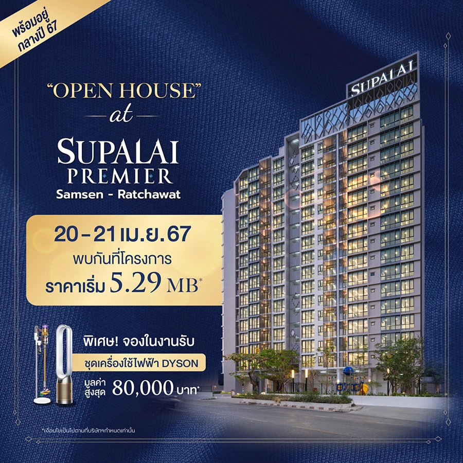 บริษัท ศุภาลัย จำกัด (มหาชน) เดินหน้าส่งมอบคอนโดฯ พร้อมอยู่ใหม่ล่าสุด "ศุภาลัย พรีเมียร์ สามเสน - ราชวัตร" เปิดต้อนรับลูกค้าให้ชมตึกจริง ห้องจริง วิวจริง จัดเต็มทุก Facilities บนทำเลศักยภาพร่วมสมัย ถนนนครไชยศรี เชื่อมต่อทุกการเดินทาง จัดงาน OPEN HOUSE มอบช่วงเวลาดีๆ พร้อมรับข้อเสนอสุดเอ็กซ์คลูซีฟเฉพาะงานนี้เท่านั้น ในวันที่ 20 - 21 เม.ย.นี้