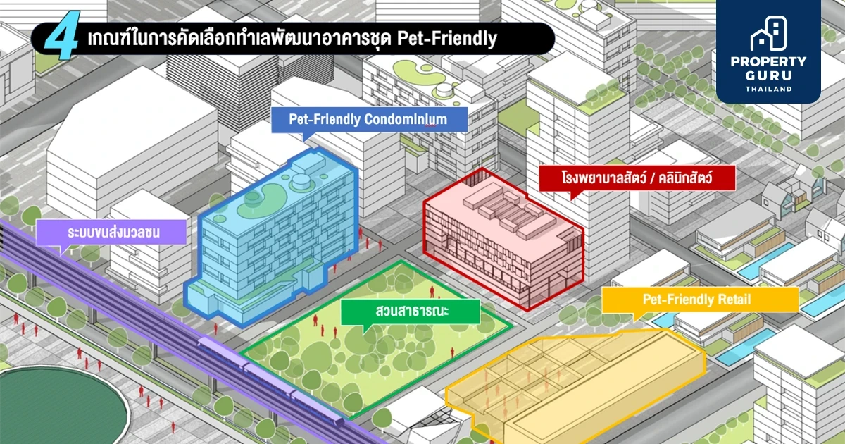 - ทำเลใกล้ระบบขนส่งมวลชน เพื่ออำนวยความสะดวกให้เจ้าของสัตว์เลี้ยงสำหรับการเดินทางไปทำงาน ข้างนอก โดยควรเลือกโครงการอาคารชุดที่ตั้งอยู่ในทำเลที่มีระบบขนส่งมวลชนเชื่อมต่อไปยังจุดอื่นในระยะ 3-5 กม. เช่น รถไฟฟ้า BTS, MRT โดยควรอยู่ในระยะเดินได้ (ภายใน 1 กม.)