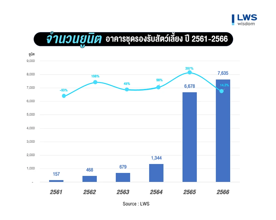 นายประพันธ์ศักดิ์ รักษ์ไชยวรรณ กรรมการผู้จัดการบริษัท แอล. ดับเบิลยู. เอส. วิสดอมแอนด์โซลูชั่นส์ จำกัด บริษัทวิจัยและพัฒนาอสังหาริมทรัพย์ในเครือ บริษัท แอล. พี. เอ็น. ดีเวลลอปเมนท์ จำกัด(มหาชน) เปิดเผยผลวิจัยของฝ่ายวิจัยและสำรวจทำเลที่เหมาะสมในการพัฒนาอาคารชุดเพื่อสัตว์เลี้ยงในพื้นที่กรุงเทพฯ และปริมณฑล ว่า จากผลการสำรวจของ แอล. ดับเบิลยู. เอส ในช่วงสิ้นปี 2566 พบว่า ณ สิ้นปี 2566 มีจำนวนอาคารชุดประเภทที่สามารถเลี้ยงสัตว์ได้ในพื้นที่กรุงเทพฯ-ปริมณฑล จำนวน 23,031 หน่วย เพิ่มขึ้น 4,600.20 % จาก 490 หน่วย เมื่อเทียบกับปี 2554 หรือเพิ่มขึ้นเฉลี่ย 353.86% ต่อปี สะท้อนให้เห็นความต้องการที่อยู่อาศัยในกลุ่มนี้ที่มีแนวโน้มเพิ่มขึ้นอย่างต่อเนื่อง จนทำให้ผู้ประกอบการอสังหาริมทรัพย์ต้องหันมาพัฒนาโครงการอาคารชุดที่สามารถเลี้ยงสัตว์ได้ เพื่อตอบโจทย์กับความต้องการของผู้ซื้อในกลุ่มที่มีสัตว์เลี้ยงเปรียบเสมือนสมาชิกในครอบครัวที่เรียกว่า Pet Parents หรือ Pet Humanization ซึ่งเป็นผลมาจากการเปลี่ยนแปลงพฤติกรรมของประชากรที่เป็นโสด หรือแต่งงานแล้วไม่อยากมีลูก และเลี้ยงสัตว์เลี้ยงเป็นเหมือนสมาชิกในครอบครัวมากกว่าที่จะเลี้ยงไว้เฝ้าบ้าน เหมือนในอดีต