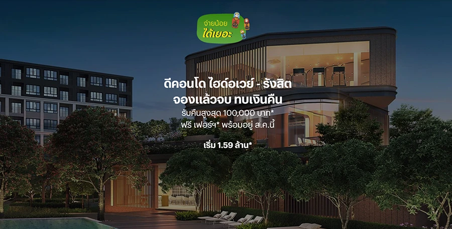 ดีคอนโด ไฮด์อเวย์ - รังสิต (dcondo Hideaway - Rangsit) คอนโดบนทำเลย่านรังสิต ครบทุกความสะดวกสบาย ใกล้มหาวิทยาลัยธรรมศาสตร์ รังสิต รายล้อมด้วยสิ่งอำนวยความสะดวก ทั้งรถไฟฟ้าสายสีแดง (โครงการในอนาคต) ทางพิเศษอุดรรัถยา ห้างสรรพสินค้า และโรงพยาบาล ใกล้รถไฟฟ้าสายสีแดงเข้ม สถานีดอนเมือง