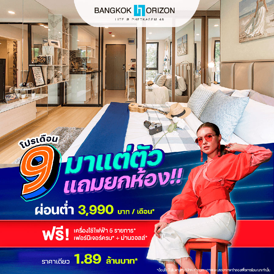 แบงค์คอก ฮอไรซอน ไลท์ @ สถานีเพชรเกษม 48 (Bangkok Horizon Lite @ Phetkasem 48) ราคาเดียว 1.89 ล้านบาท* มาแต่ตัวแถมยกห้อง คอนโดพร้อมอยู่บรรยากาศรีสอร์ท สะดวกสบายทุกการเดินทาง 150 ม. ถึง MRT เพชรเกษม 48