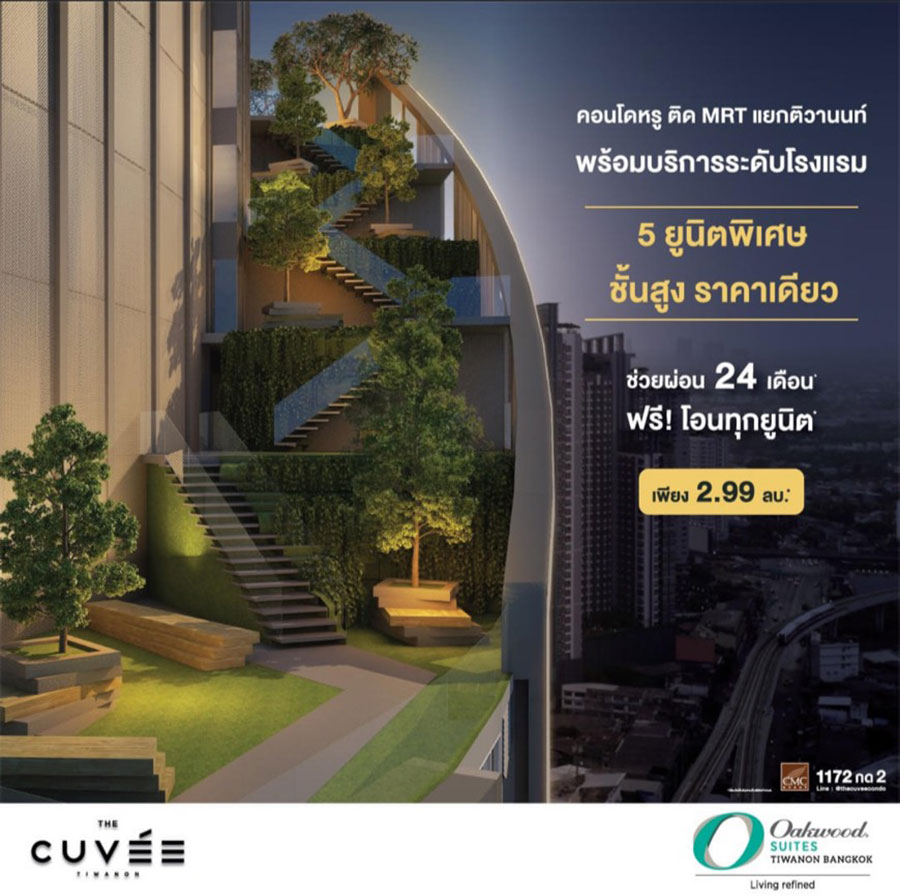 เดอะ คิวเว่ ติวานนท์ (The Cuvee Tiwanon) ชั้นสูงราคาเดียว 2.99 ล้านบาท* คอนโดหรู ติด MRT แยกติวานนท์ พร้อมบริการระดับโรงแรม จองวันนี้! ช่วยผ่อน 24 เดือน* ฟรีโอนทุกยูนิต*