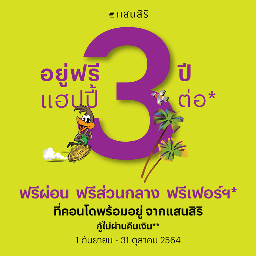 2. โปร "อยู่ฟรี 3 ปี แฮปปี้ 3 ต่อ" จากแสนสิริ