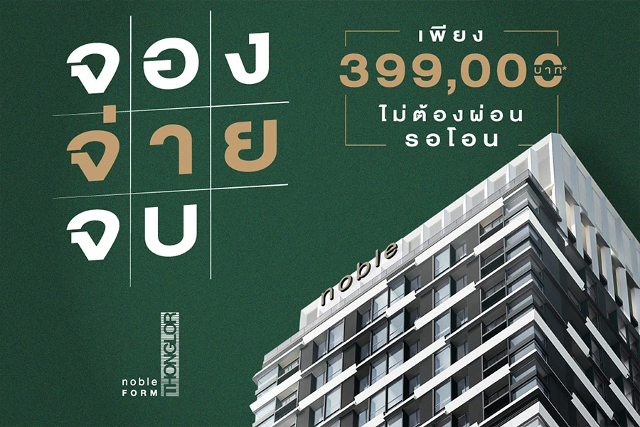 โครงการ โนเบิล ฟอร์ม ทองหล่อ (Noble Form Thonglor) คอนโดระดับไอคอนนิค สูงที่สุดใจกลางทองหล่อ พร้อม Facilities เหนือเส้นขอบฟ้า เยื้อง J Avenue เพียงไม่กี่ก้าวถึงใจกลางทองหล่อ มอบดีลที่ดีที่สุด ด้วย "จอง จ่าย จบ เพียง 399,000 บ.* ไม่ต้องผ่อน รอโอน" กับ 1 ห้องนอน 31 ตร.ม. Fully Fitted เริ่ม 6.8 ล้าน* จำนวนจำกัด!