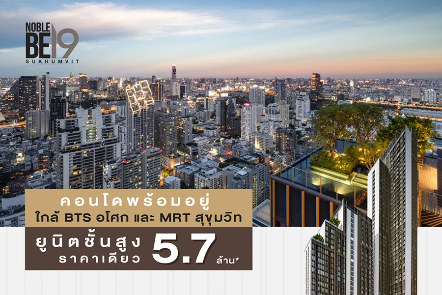 โครงการ โนเบิล บี19 (Noble BE19) ลักชัวรี่คอนโดมิเนียม พร้อมอยู่ ซอยสุขุมวิท 19 ครบทุกการเชื่อมต่อในการใช้ชีวิต บนทำเลใกล้ BTS อโศก และ MRT สุขุมวิท พร้อมกับที่สุด Facilities ระดับพรีเมี่ยม ใจกลางเมือง มอบดีลที่ดีที่สุด ด้วย "FIRST COME FIRST SERVED ยูนิตชั้นสูง ราคาเดียว 5.7 ล้าน*"