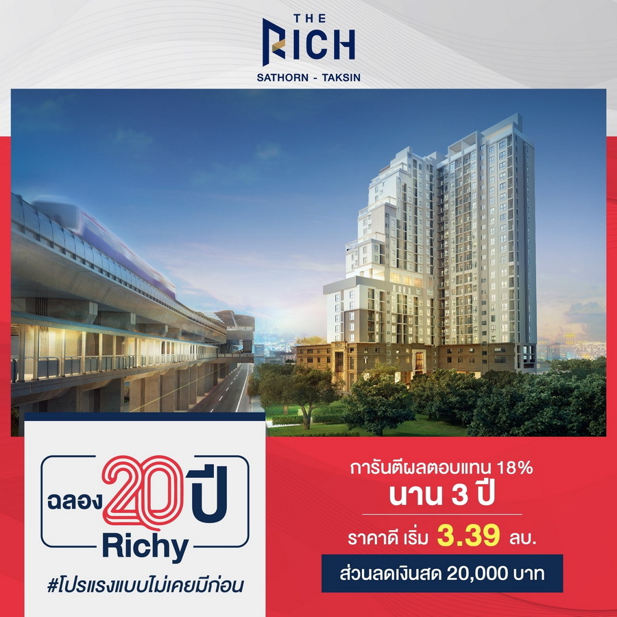 เดอะริช สาทร-ตากสิน (The Rich Sathorn-Taksin) คอนโดใกล้รถไฟฟ้า เพียง 2 นาทีจาก BTS วงเวียนใหญ่ การันตี Yield 18% 3 ปี ราคาดี เริ่ม 3.39 ล้านบาท