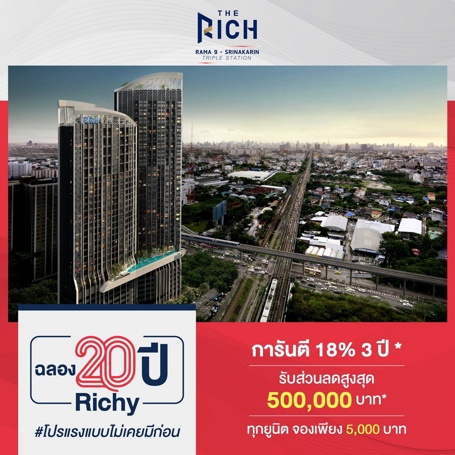 บริษัท ริชี่เพลซ 2002 จำกัด (มหาชน) ครบรอบ 20 ปี ลดสูงสุดกว่า 5 ล้าน* โปรแรงแบบนี้ RICHY ไม่เคยมีมาก่อน! พลาดครั้งนี้ไม่มีอีกแล้ว!! รวมคอนโดและบ้านราคาสุดคุ้ม บนทำเลศักยภาพ เริ่ม 2.59 - 4.99 ล้าน* ตั้งแต่วันนี้ - 15 พฤศจิกายน 2564 เท่านั้น! สำหรับคอนโดและบ้านราคาสุดคุ้มที่เข้าร่วมแคมเปญ ได้แก่