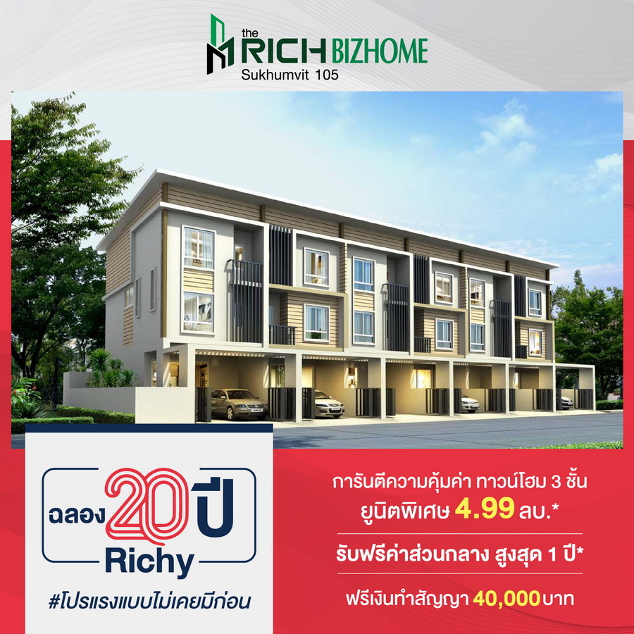 เดอะริช บิซ โฮม สุขุมวิท 105 (The Rich Biz Home @Sukhumvit 105) โฮมออฟฟิศบนถนนศรีนครินทร์ เพียง 300 เมตร จาก MRT ศรีลาซาล ยูนิตพิเศษ 4.99 ล้านบาท