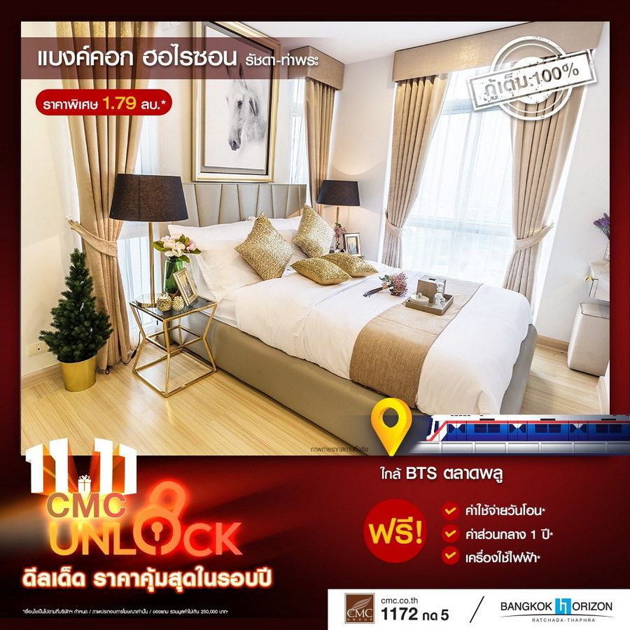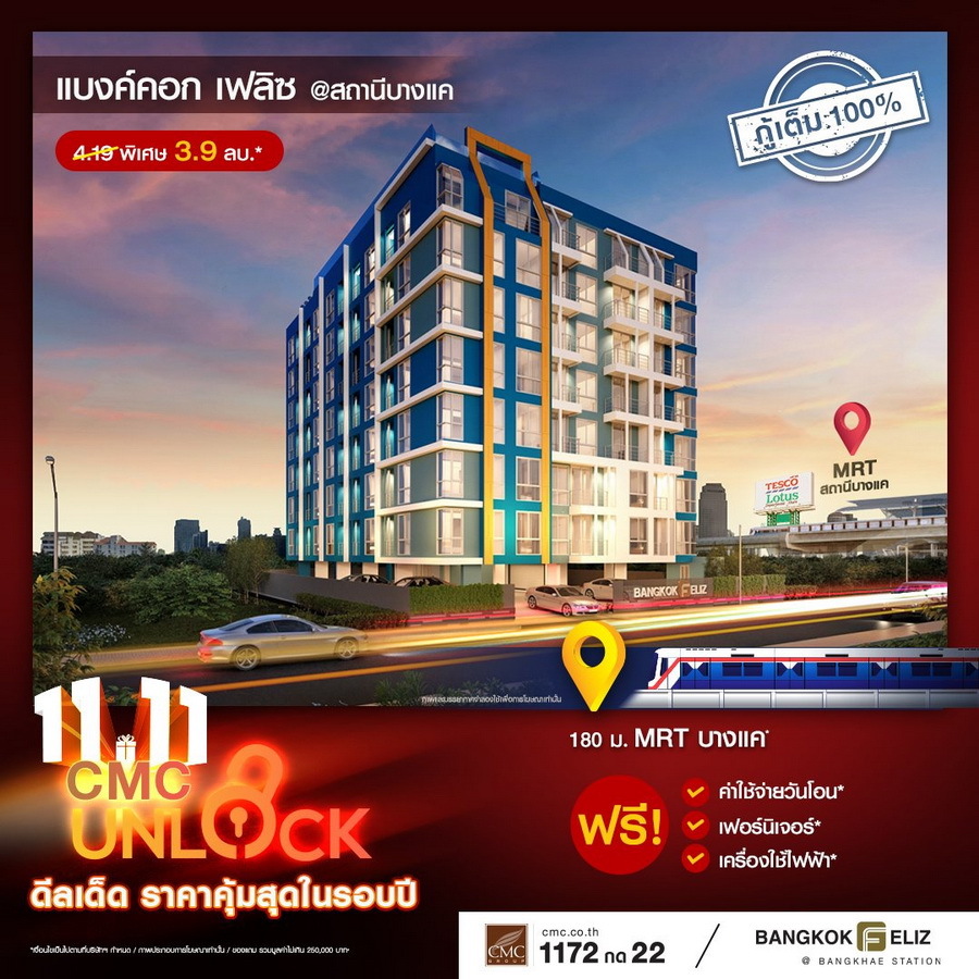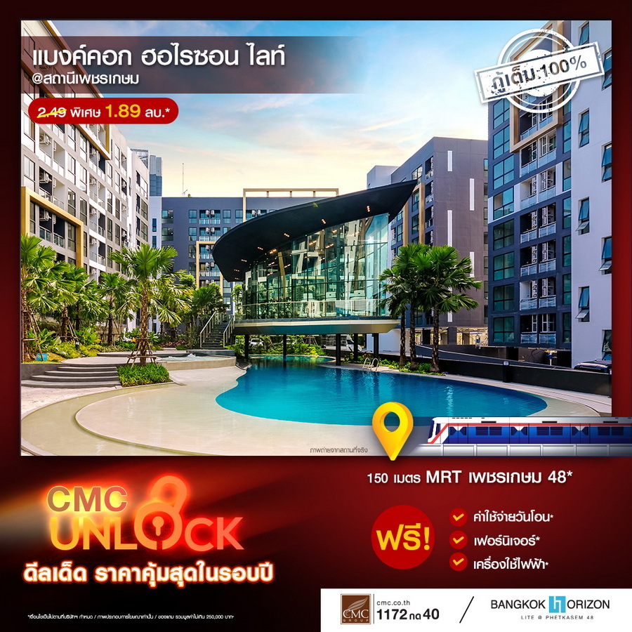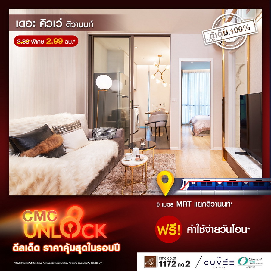 CMC ขานรับ LTV กู้ได้เต็ม 100% ทุกยูนิต งัดแคมเปญใหญ่ดึงลูกค้า "UNLOCK" ดีลเด็ดราคาคุ้มที่สุดในรอบปี! พร้อมเสิร์ฟของแถมไม่อั้น 11 โครงการพร้อมอยู่ใกล้รถไฟฟ้า