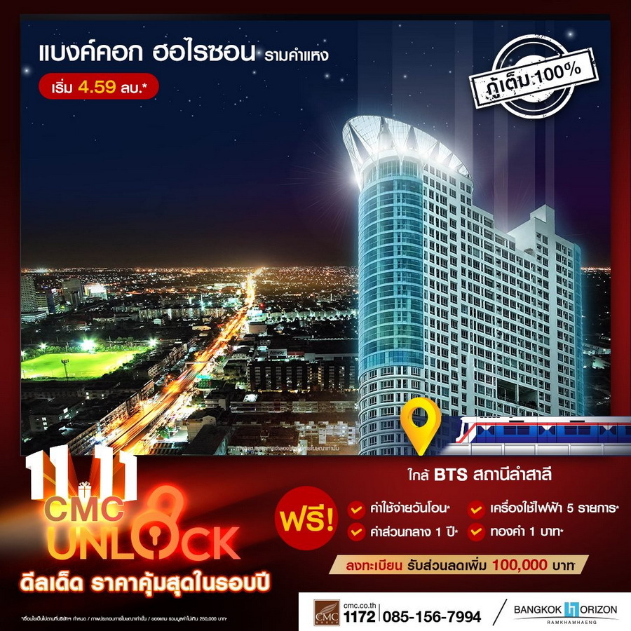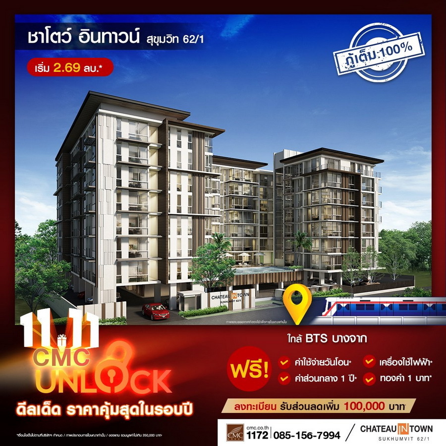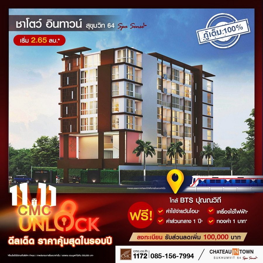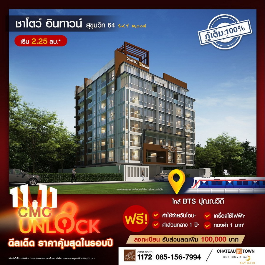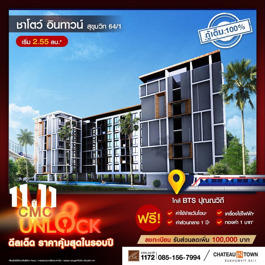 CMC ขานรับ LTV กู้ได้เต็ม 100% ทุกยูนิต งัดแคมเปญใหญ่ดึงลูกค้า "UNLOCK" ดีลเด็ดราคาคุ้มที่สุดในรอบปี! พร้อมเสิร์ฟของแถมไม่อั้น 11 โครงการพร้อมอยู่ใกล้รถไฟฟ้า