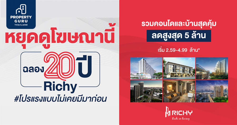 Richy 20 Years แจกทุกยูนิตส่งท้ายปี ลดสูงสุด 5 ล้าน*