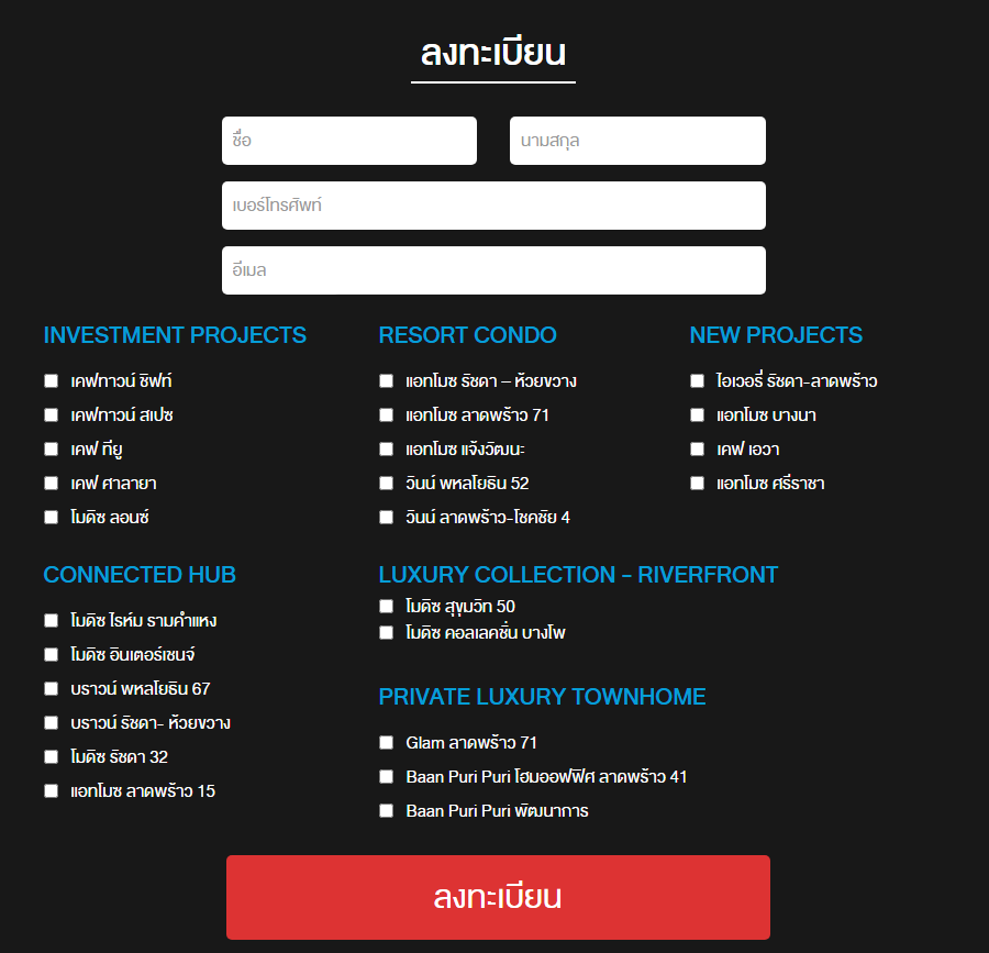 ครงการแอทโมซ แจ้งวัฒนะ, โครงการแอทโมซ รัชดา – ห้วยขวาง, โครงการแอทโมซ ลาดพร้าว 71, โครงการโมดิซ รัชดา 32, โครงการบราวน์ รัชดา – ห้วยขวาง, โครงการวินน์ ลาดพร้าว – โชคชัย 4, โครงการบีแคมปัส และโครงการวินน์ พหลโยธิน 52