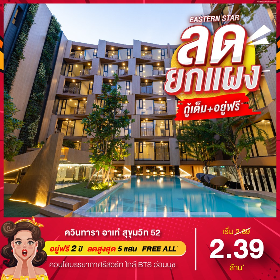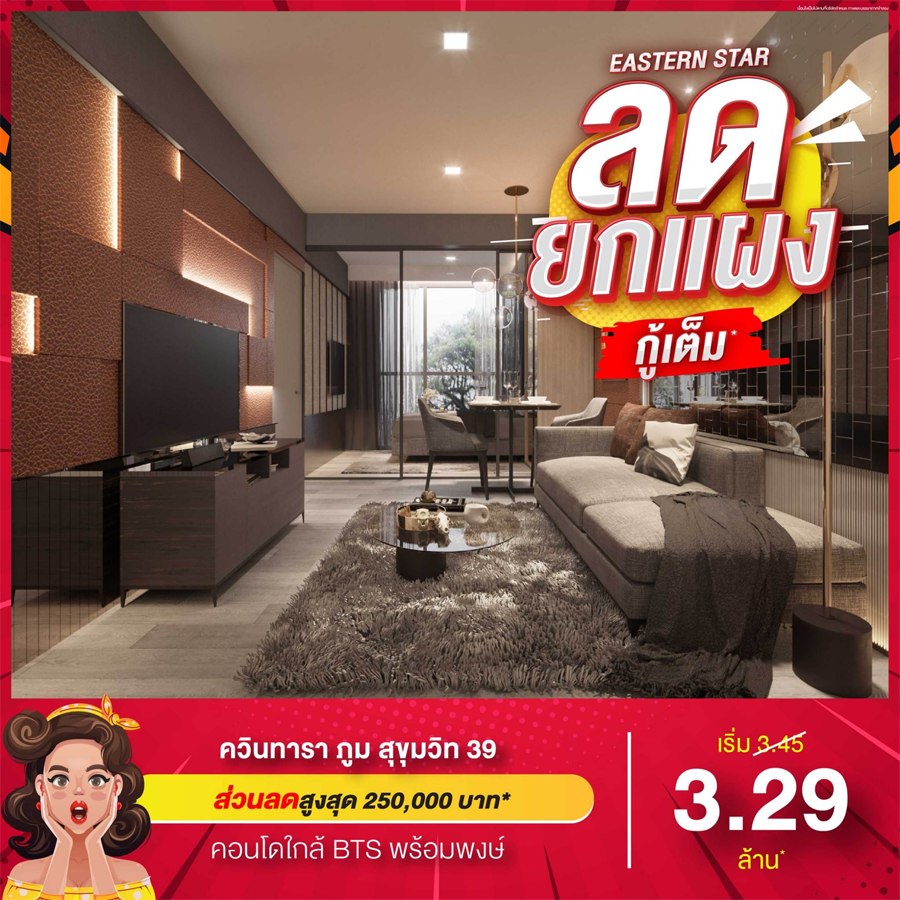 บริษัท อีสเทอร์น สตาร์ เรียล เอสเตท จำกัด (มหาชน ) หรือ ESTAR มอบความสุขส่งท้ายปีกับโปร "ลดยกแผง" ลดหนักสุดในรอบปี!! ทุกโครงการจาก EASTERN STAR ตอบรับมาตรการผ่อนคลายเกณฑ์ LTV ใหม่ จัดข้อเสนอสุดพิเศษบ้าน และคอนโดทำเลทอง ที่มีให้เลือกหลากหลายโลเคชั่น จัดเต็มทุกความพรีเมียม ในราคาสุดแสนจะคุ้ม อยู่เองเริ่ด หรือเก็บไว้ทำกำไรยิ่งได้ผลตอบรับดี จัดโปรเดือดมาให้ขนาดนี้ต้องรีบไปจอง