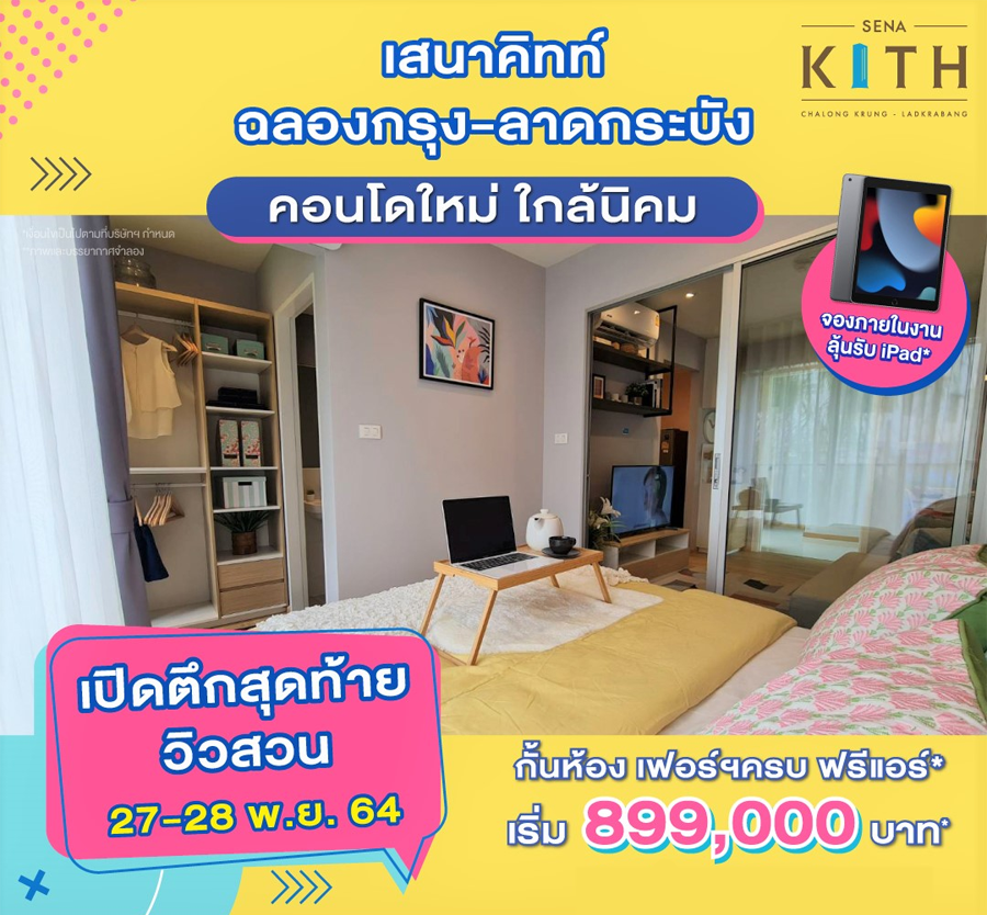 เป็นปลื้มฟีดแบคคอนโดฯ แบรนด์ "เสนาคิทท์" คอนโดของคนช่างคิด ไฟติ้งแบรนด์ของเสนาปีนี้ ล่าสุด เสนา คิทท์ ฉลองกรุง - ลาดกระบัง (Sena Kith Chalong Krung-Ladkrabang) คอนโดใกล้นิคมฯ ลาดกระบัง เปิดขาย 3 เดือน เฟสแรก Sold Out 100% ล่าสุดเตรียมโอเพ่นตึกสุดท้าย 27 - 28 พฤศจิกายน เริ่มเพียง 899,000 บาท