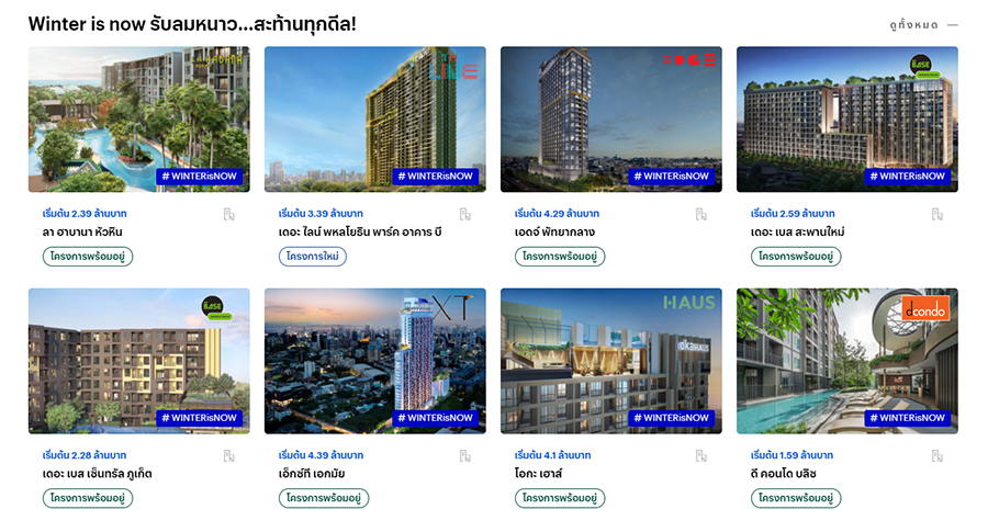 แสนสิริปล่อยโปรหนาวๆ Winter is now รับลมหนาว...สะท้านทุกดีล! จอง 999 บาท ลดสูงสุด 2.4 ล้าน กรอกโค้ด "FREEZING" ให้ส่วนลดเพิ่มสูงสุด 20,000 บาท* เฉพาะโครงการด้านล่างนี้