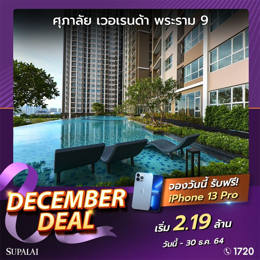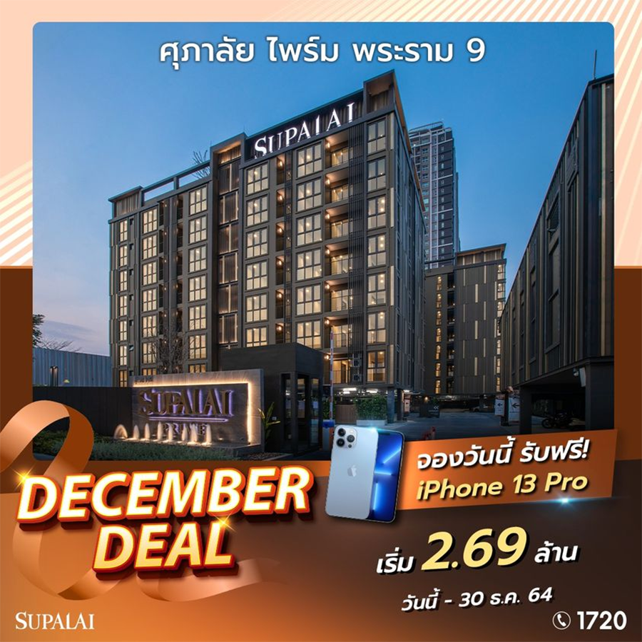 บริษัท ศุภาลัย จํากัด (มหาชน) จัดโปรแรงส่งท้ายปี "DECEMBER DEAL" รวมคอนโดโซนรัชดาฯ-พระราม9 ทุกยูนิต จองปั๊บ รับฟรี iPhone 13 Pro 128 GB พร้อมฟรี! ค่าใช้จ่ายวันโอนฯ วันนี้ 30 ธ.ค. 64 เท่านั้น!