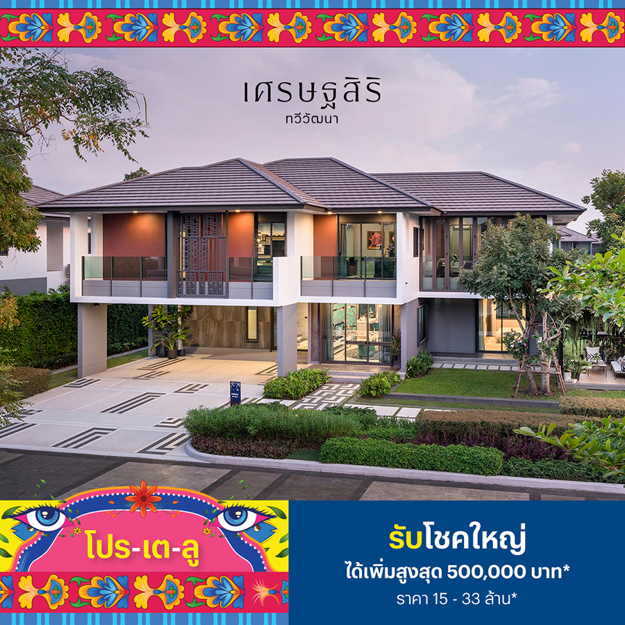 - รับโชคต้นปีสูงสุด 2 ล้านบาท อยู่ฟรีนาน 2 ปี หรือโชคใหญ่ผ่อนสบาย 3 ปี พร้อมทางเลือกทางการเงินเมื่อจอง 50 โครงการบ้านและทาวน์โฮมของแสนสิริ* เพื่อให้คุณเป็นเจ้าของบ้านและทาวน์โฮมจากแสนสิริ ได้ง่ายๆ อาทิ แสนสิริผ่อนให้สูงสุด24 เดือน, ผ่อนต่ำล้านละ 2,500 บาท นาน 2 ปี ดอกเบี้ยต่ำ 2.25% นาน 3 ปี ทุกโครงการฟรีค่าใช้จ่ายวันโอน และฟรีค่าส่วนกลางนานสูงสุดถึง 2 ปี เมื่อจองและโอนกรรมสิทธิ์ภายในวันที่ 31 มีนาคม 65 ทั้งนี้เงื่อนไขและโปรโมชั่นแตกต่างกันในแต่ละโครงการ และเฉพาะยูนิตที่ร่วมรายการ พิเศษ!! 9 วันมงคลรับตรุษจีน ตั้งแต่วันที่ 29 มกราคม – 6 กุมภาพันธ์นี้ มีบ้านใหม่พร้อมความมั่งคั่ง ร่ำรวย รับทองคำสูงสุด 9 บาท* เมื่อจองบ้านและทาวน์โฮมของแสนสิริอีกด้วย