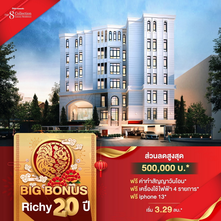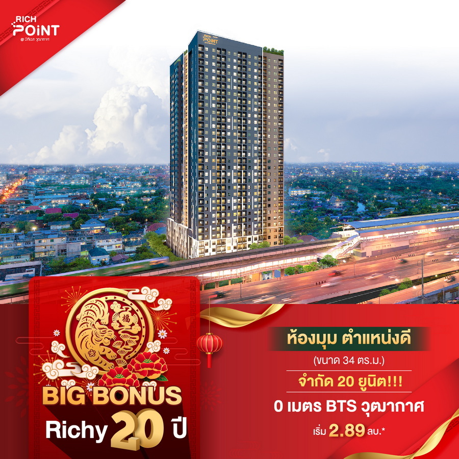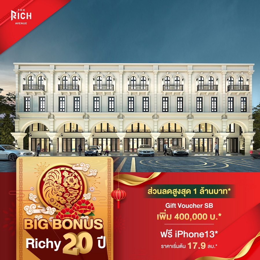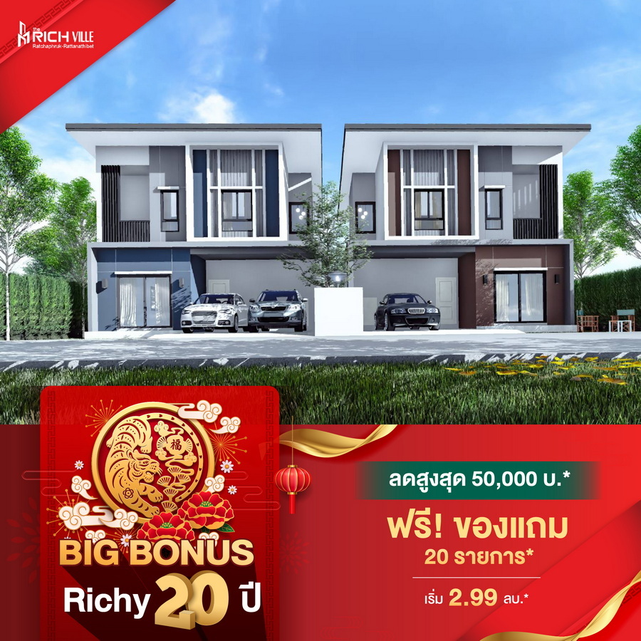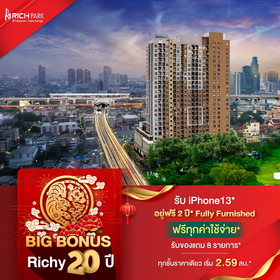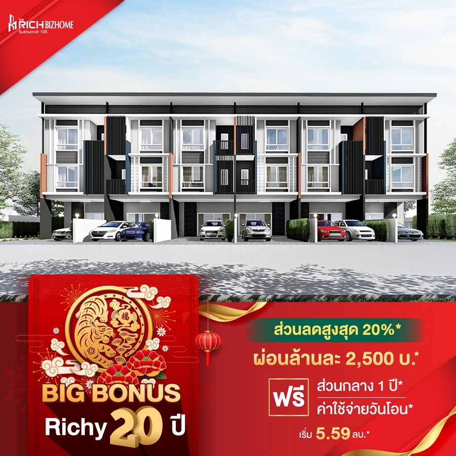 บริษัท ริชี่เพลซ 2002 จำกัด (มหาชน) หรือ RICHY ฉลองครบรอบ 20 ปีแห่งการดำเนินธุรกิจพัฒนาอสังหาริมทรัพย์ ส่งมอบความสุข และความสำเร็จ อัดแคมเปญใหญ่ "ริชี่ 20 ปี ลด 20% ทุกยูนิต" แทนคำขอบคุณจากใจ และความผูกพันที่มีให้กันมาอย่างต่อเนื่อง เพียงจองโครงการบ้านและคอนโดมิเนียม ทุกการจองรับทันทีส่วนลด 20% โดยมอบส่วนลดสูงสุด ตั้งแต่ 20,000-1,000,000 พร้อมของแถมจัดเต็มอีกมากมาย เริ่มตั้งแต่วันที่ 1 มกราคม ถึง 28 กุมภาพันธ์ 2565 นี้เป็นต้นไป
