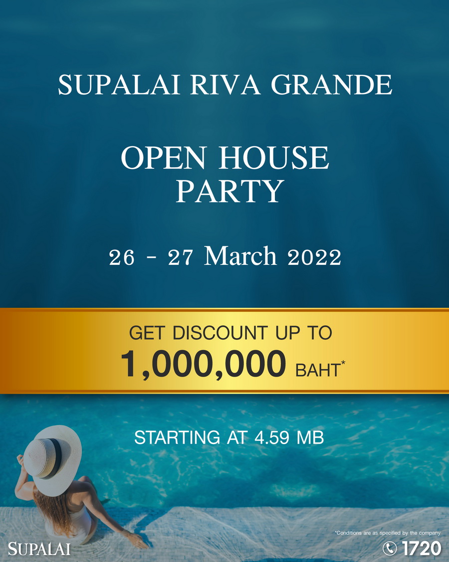 ศุภาลัย มอบส่วนลดพิเศษสูงสุด 1 ล้านบาท* ในงาน OPEN HOUSE PARTY กับคอนโดพร้อมอยู่ “SUPALAI RIVA GRANDE”