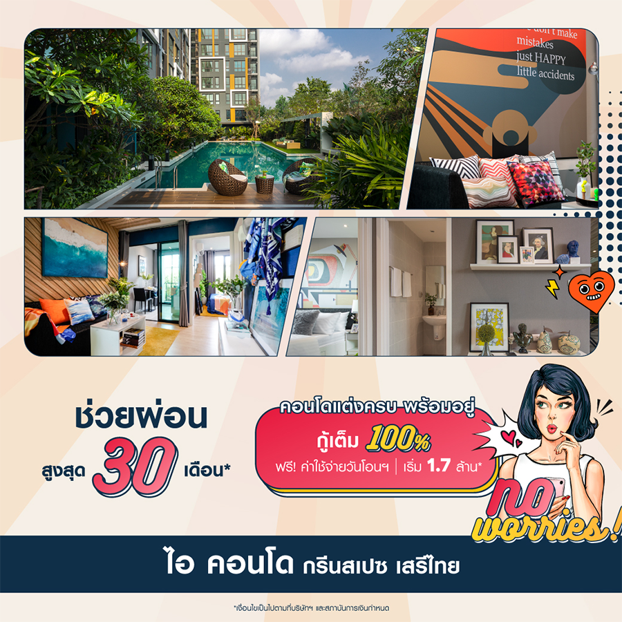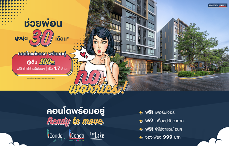 พร็อพเพอร์ตี้ เพอร์เฟค ส่งโปรฯ "No Worries" กับ 3 คอนโดพร้อมอยู่ 3 ทำเล ไอ คอนโด กรีนสเปซ เสรีไทย, ไอคอนโด ศาลายา 2 เดอะ แคมปัส, เดอะ เลค กัลปพฤกษ์-วุฒากาศ เริ่ม 1.7 ล้านบาท* โปรโมชั่นสิ้นสุด 30 มิ.ย. 2565 จองวันนี้ แถมฟรีอีกเพียบ