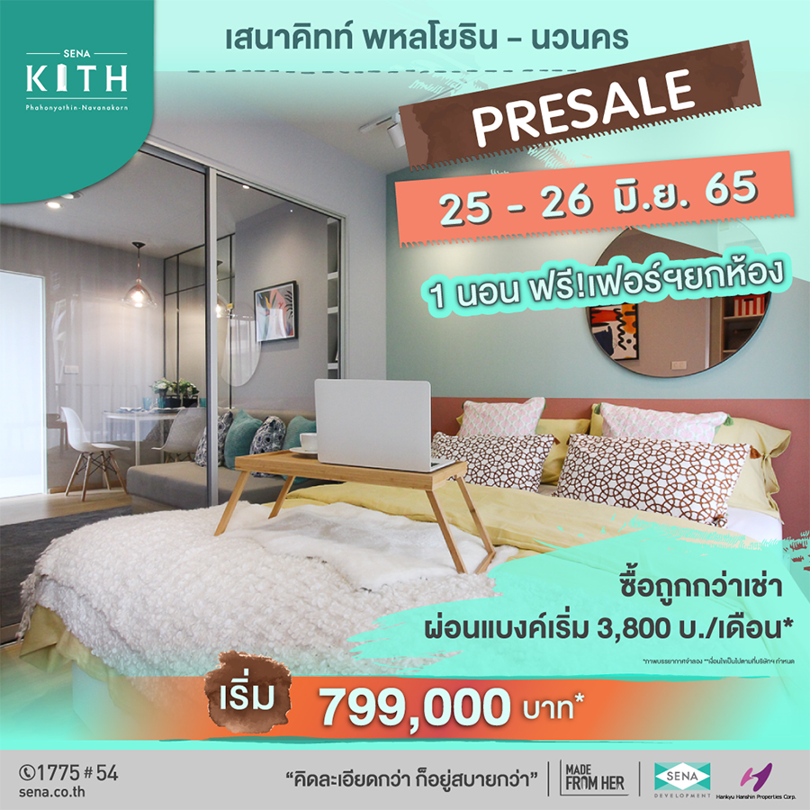 เสนาฯ เตรียมเปิด Presale คอนโดใหม่ เสนาคิทท์ พหลโยธิน - นวนคร วันที่ 25 - 26 มิ.ย. 65 คอนโดใกล้นิคมนวนคร ส่วนกลางครบ สระว่ายน้ำ ฟิตเนส ลิฟต์ล็อกชั้น ให้คุ้มเกินคาด
