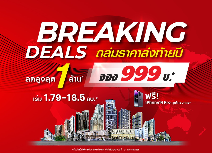 "Breaking Deals ถล่มราคาส่งท้ายปี" พบกับโครงการคอนโดมิเนียมทำเลศักยภาพติดรถไฟฟ้า และโครงการบ้านทาวน์โฮมพร้อมอยู่ เริ่ม 1.79 - 23 ลบ. ลดสูงสุด 5 ลบ.!!! พบกันที่ "งานมหกรรมบ้านและคอนโด ครั้งที่ 42" บูธตำแหน่ง C23-26 , C35-38