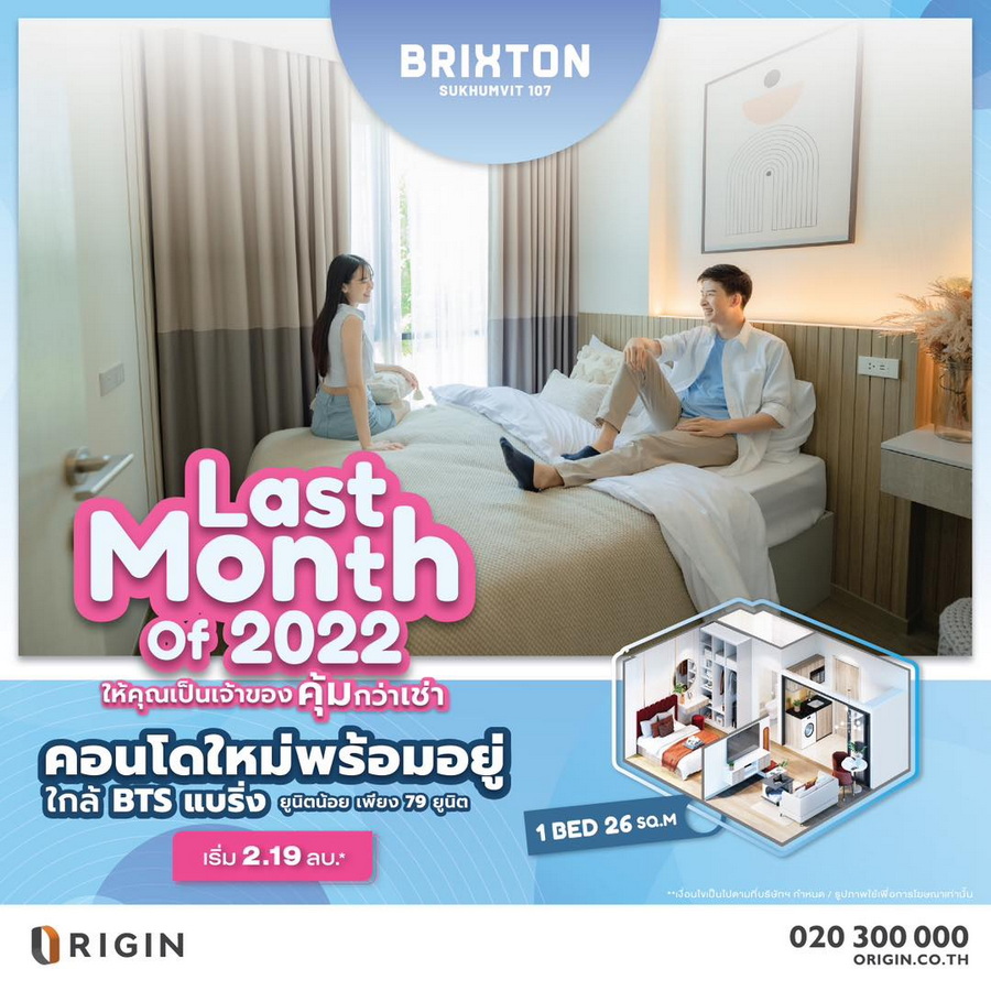 Last Month of 2022 ให้คุณเป็นเจ้าของคุ้มกว่าเช่า กับโครงการ BRIXTON Sukhumvit 107 คอนโดพร้อมอยู่ ยูนิตน้อย ความเป็นส่วนตัวสูง มาพร้อมห้องกว้าง เพดานสูง 2.65 เมตร ครบจบทุกฟังก์ชันการใช้งาน ราคาเริ่ม 2.19 ลบ.*