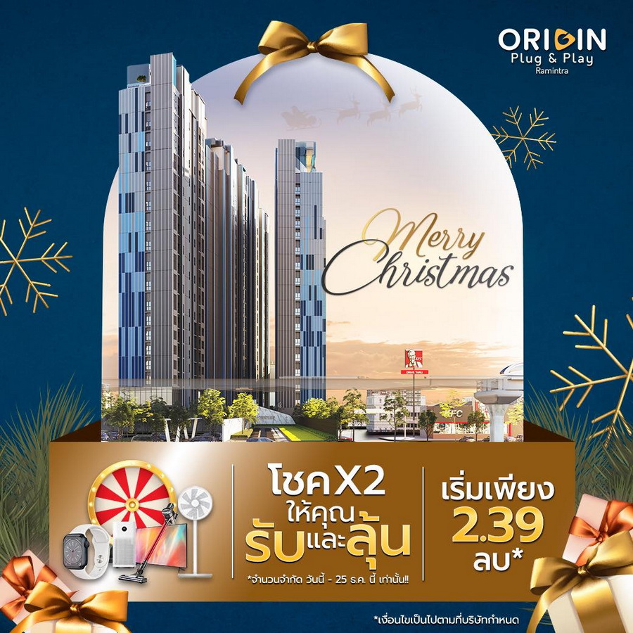Merry X Mas DOUBLE DEAL ต้อนรับเทศกาลแห่งความสุข ให้คุณทั้งรับ APPLE WATCH SEIRIES 8 และ ลุ้นของรางวัลมากมายที่สำนักงานขาย กับโครงการ ORIGIN PLUG & PLAY RAMINTRA คอนโดใหม่ใกล้ห้างแฟชั่นไอส์แลนด์-พร็อมนาด เพียง 5 นาที เชื่อมต่อรถไฟฟ้าสายสีชมพู เพียง 70 เมตร ส่วนกลางครบที่เชื่อมต่อทุกส่วนกลางเข้าไว้ด้วยกัน เริ่ม 2.39 ล้านบาท* จำนวนจำกัด* วันนี้ - 25 ธ.ค. นี้เท่านั้น