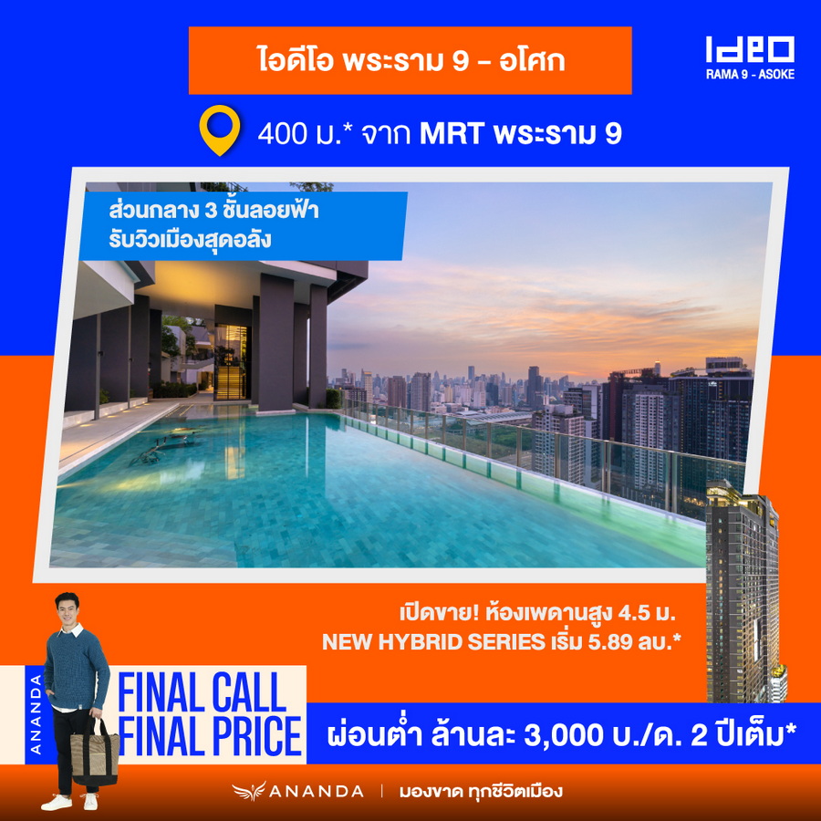อนันดา ดีเวลลอปเม้นท์ จัดแคมเปญ "ANANDA FINAL CALL FINAL PRICE" ประกาศครั้งสุดท้าย! กับราคาส่งท้ายปี กับคอนโดมิเนียมคุณภาพเยี่ยม 13 โครงการ ภายใต้แบรนด์คุณภาพ แอชตัน ไอดีโอ คิว ไอดีโอ โมบิ ไอดีโอ เอลลิโอ และ ยูนิโอ พร้อมโปรโมชั่นดีลพิเศษ "แต่งครบ ฟรี! ค่าโอนฯ กู้ 100% กู้ไม่ผ่านยินดีคืนเงิน" ราคาเริ่ม 1.49 - 12.9 ล้าน* ตั้งแต่วันนี้ - 31 ธ.ค. 2565 นี้