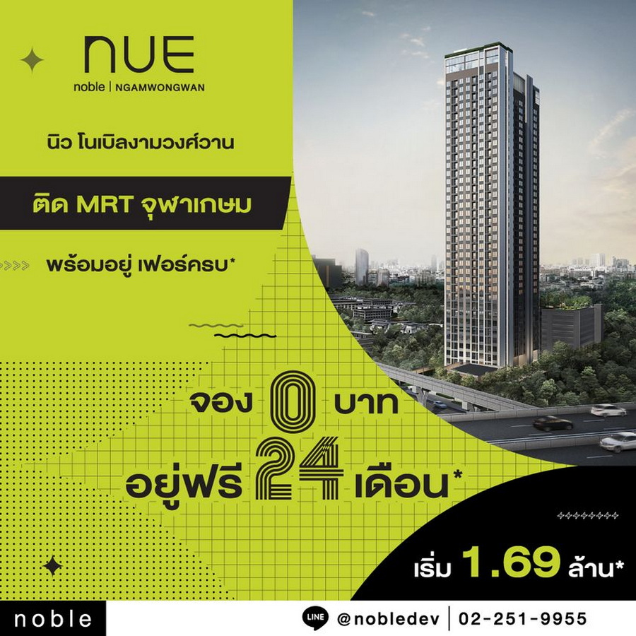 "นิว โนเบิล งามวงศ์วาน" คอนโดห้องหน้ากว้าง พร้อมอยู่ เฟอร์ครบ* ติด MRT จุฬาเกษม เชื่อมรถไฟฟ้า 5 สาย
