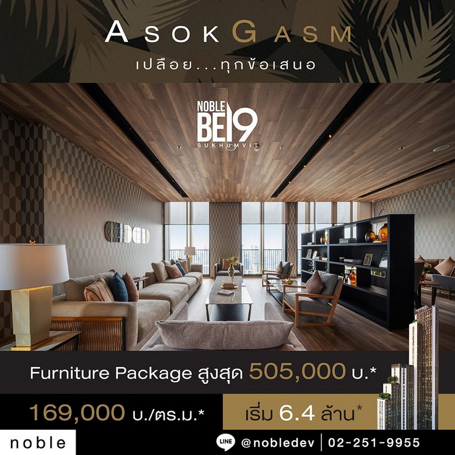 ASOK GASM ฟีลดี…ที่อโศก กับโครงการ "โนเบิล บี 19" คอนโดพร้อมอยู่ แต่งครบ ใจกลางสีสันอโศก ห้องแบบ 1-BED ชั้นสูง วิวเมืองอโศก เริ่ม 6.4 ล้าน* หรือ 169,000 บ. / ตร.ม.* พร้อมโปรโมชั่น เปลือย…ทุกข้อเสนอ รีบคว้าวันนี้ ก่อนปรับราคา จำนวนจำกัด ที่สำนักงานขาย