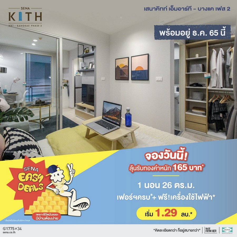 เสนา จัดแคมเปญแรงส่งท้ายปี SENA EASY DEALS จองคอนโดพร้อมอยู่ ทำเลเด่น กว่า 10 โครงการวันนี้ รับสิทธิ์ลุ้นทองคำหนัก 165 บาท* (รวม 100 รางวัล) มูลค่ารวมกว่า 4.9 ล้านบาท* พร้อมรับสิทธิพิเศษจัดเต็ม 3 ต่อ*