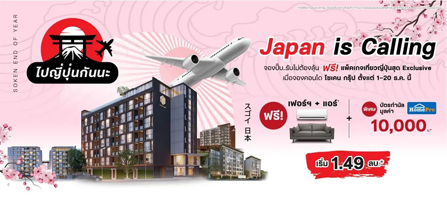 Japan is Calling รับฟรี! แพ็คเกจทัวร์ “ญี่ปุ่น” เมื่อจองคอนโดพร้อมอยู่จาก โซเคน ดีเวลลอปเม้นท์ กรุ๊ป วันที่ 1 - 20 ธันวาคม 65 นี้เท่านั้น รับข้อเสนอพิเศษ