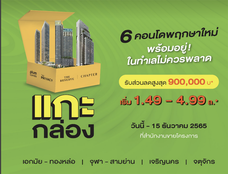 สำหรับการจองบ้านและคอนโดมิเนียม สร้างเสร็จพร้อมโอนกรรมสิทธิ์ โปรโมชั่นตั้งแต่วันที่ 21 พฤศจิกายน- 30 ธันวาคม 2565 เท่านั้น