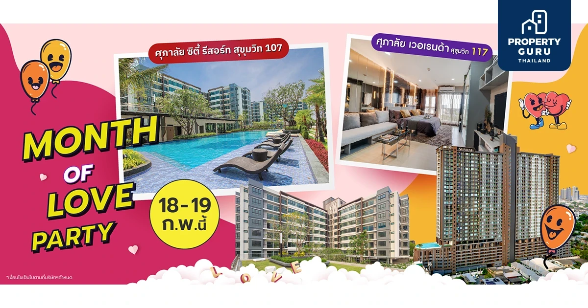พบกับงาน “Month of love Party” ต้อนรับเดือนแห่งความรัก สำหรับลูกค้าที่กำลังมองหาที่อยู่อาศัยในทำเลใกล้รถไฟฟ้า บนถนนสุขุมวิท ในราคาที่จับต้องได้ อย่างเช่น