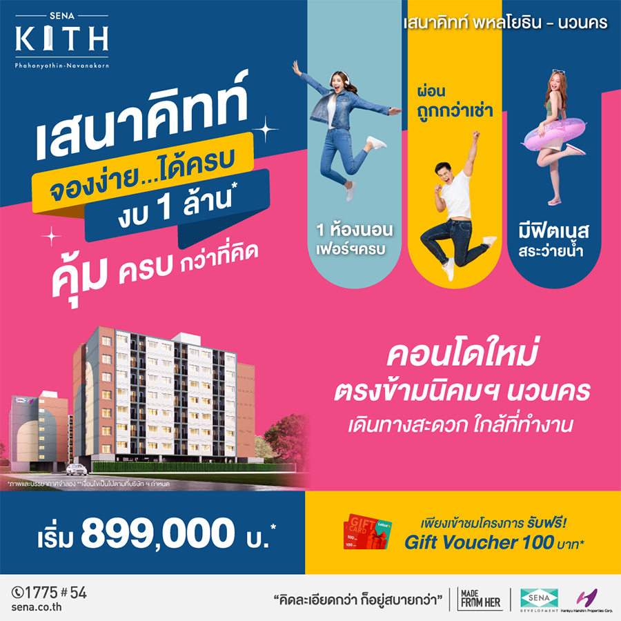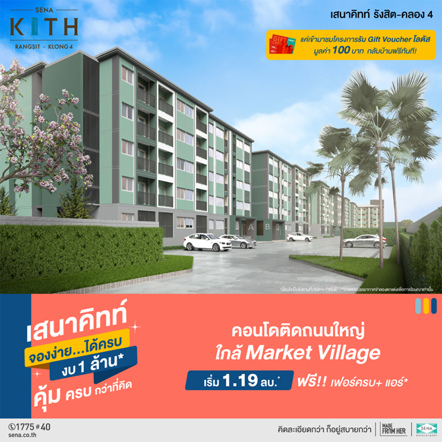 คอนโดเสนาคิทท์ จองง่าย ได้ครบ งบ 1 ล้าน* คุ้ม ครบกว่าที่คิด กับคอนโดเสนาคิทท์ 11 โครงการคุณภาพ ทำเลใกล้รถไฟฟ้า ทั่วกรุงเทพฯ และปริมณฑล พิเศษ! เพียงแวะชมโครงการเสนาคิทท์ รับฟรีทันที Gift Voucher มูลค่า 100 บาท!