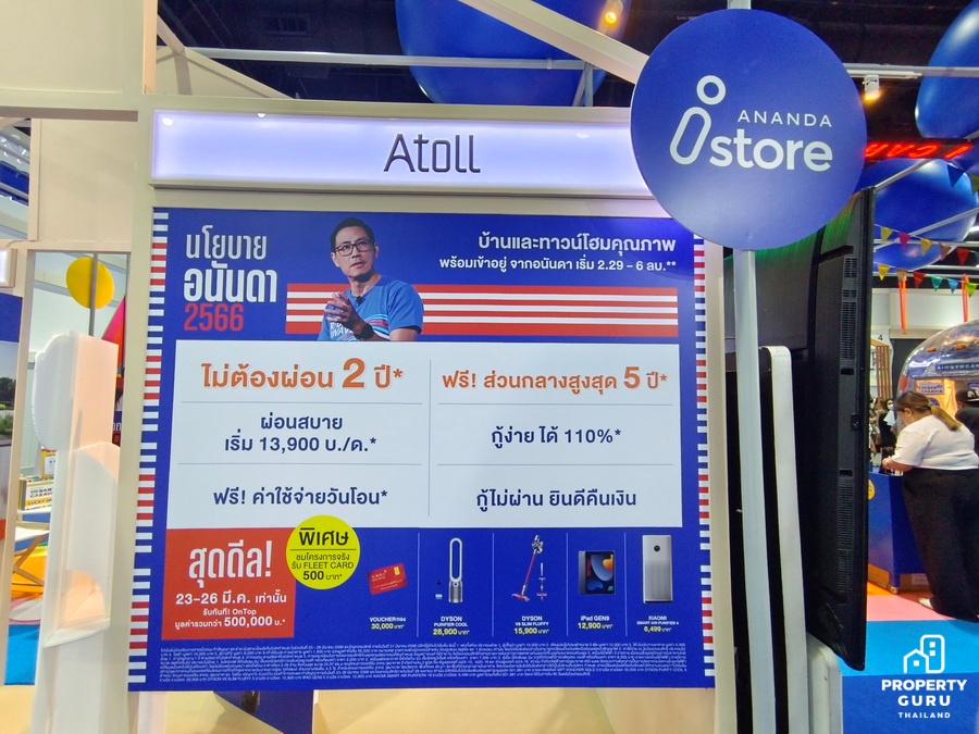 โปรโมชั่นในงาน ต่อที่ 1 มัดจำในงานเพียง 5,000 บาท จากปกติ 10% ของราคาขาย ต่อที่ 2 ฟรี ค่าโอนและค่าภาษี ต่อที่ 3 โอนกรรมสิทธิ์ ภายใน 30 เมษายน 2566 รับส่วนลดเพิ่มสูงสุด 100,000 บาท
