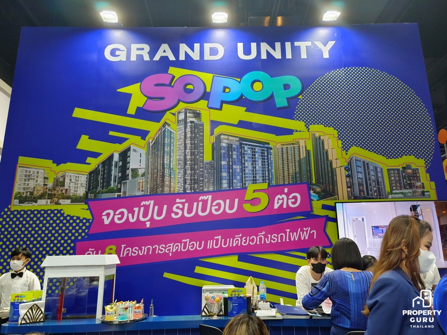 GRAND UNITY SO POP จองปุ๊บ รับป๊อบ 5 ต่อ กับ 8 โครงการสุดป๊อบ แป๊บเดียวถึงรถไฟฟ้า เริ่มเพียง 1.79 ล้านบาท* สำหรับคนที่กำลังมองหาคอนโดใหม่ห้ามพลาด! เพราะงานนี้ Grand Unity ยกทัพ 8 โครงการสุดป๊อบ ทั้งคอนโดพร้อมอยู่และคอนโดใหม่ Pre-Sale มาให้เลือกกันแบบจุใจ บนทำเลสุดจัด แป๊บเดียวถึงรถไฟฟ้า! มาพร้อมส่วนกลางและบรรยากาศสุดฟิน พักผ่อนกันได้เต็มอิ่มทุกวัน จะซื้อเพื่ออยู่เองก็ดี หรือจะซื้อเพื่อลงทุนปล่อยเช่า ก็คุ้มมากเว่อร์!
