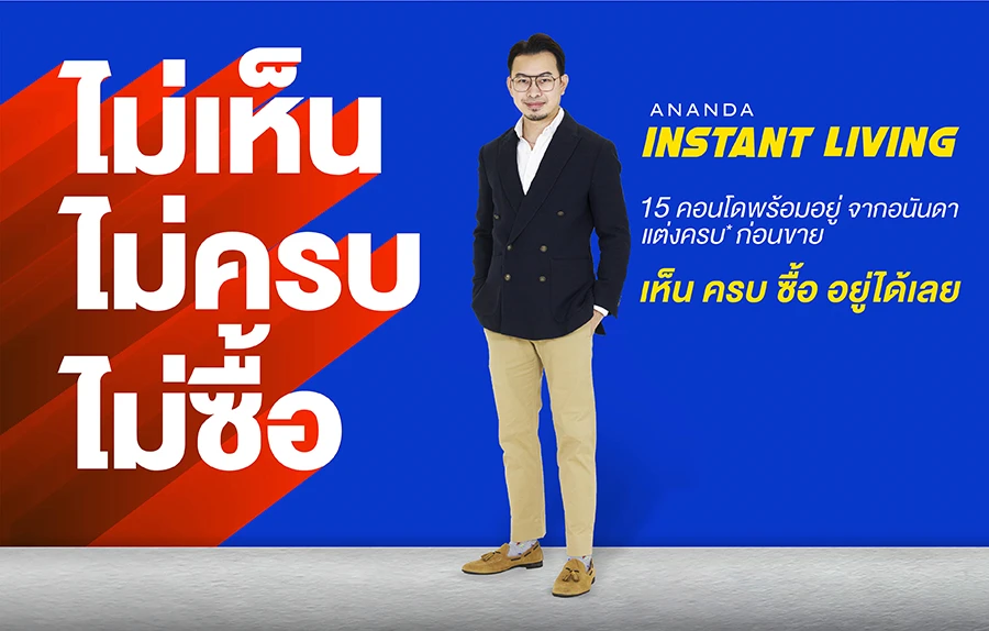 คุณพงศ์อนันต์ สุขเกษม ประธานเจ้าหน้าที่สายงานการตลาด บริษัท อนันดา ดีเวลลอปเม้นท์ จำกัด (มหาชน) ตอกย้ำจุดยืนของแบรนด์ เป็นคอนโดมิเนียมพร้อมอยู่ ใกล้รถไฟฟ้าของคนเมือง ชวนผู้บริโภคคิดก่อนเลือกซื้อคอนโดพร้อมอยู่ ด้วยแนวคิด “ไม่เห็น ไม่ครบ ไม่ซื้อ” กับแคมเปญ “Ananda Instant Living แต่งอย่างครบ” นำเสนอ 15 โครงการคอนโดมิเนียมพร้อมอยู่ แต่งครบ ก่อนขาย ทุกโครงการ ภายใต้แบรนด์คุณภาพ แอชตัน โคโค่ พาร์ค ไอดีโอ คิว ไอดีโอ โมบิ ไอดีโอ เอลลิโอ และยูนิโอ บนทำเลที่ดีที่สุดของกรุงเทพฯ พร้อมข้อเสนอพิเศษที่แตกต่างไม่เหมือนใครในแต่ละโครงการ อาทิ “จองเริ่ม 999 บ. กู้ 100% ฟรี! ค่าโอนฯ ฟรี! ค่าส่วนกลางสูงสุด 4 ปี และแต่งครบ ได้อย่างที่เห็น” ราคาเริ่ม 1.59 - 18.9 ล้านบาท*