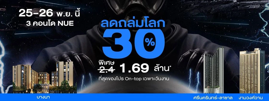 ? แจกพิกัด 3 คอนโด NUE “ลดถล่มโลก 30%” 25-26 พ.ย. นี้ เท่านั้น