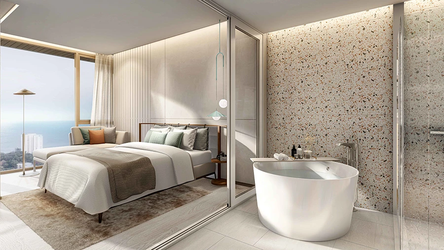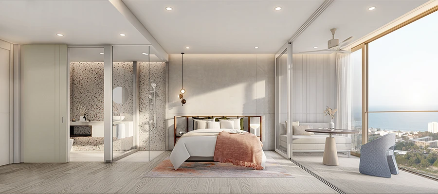ห้องขนาด 1 Bedroom Plus ราคาเริ่ม 4.99 ล้าน พื้นที่ห้องขนาดใหญ่ขึ้น รับวิวทะเลได้จากทั้งห้องนอนและห้องนั่งเล่น มีพื้นที่อเนกประสงค์สามารถปรับเปลี่ยนฟังก์ชั่นได้หลากหลายไม่ว่าจะเป็นห้องทำงาน ห้องรับประทานอาหาร หรือห้องนอนเล็ก พร้อม Sexy Bathroom และอ่างอาบน้ำที่สามารถรับวิวทะเลจากมุมภายในห้อง